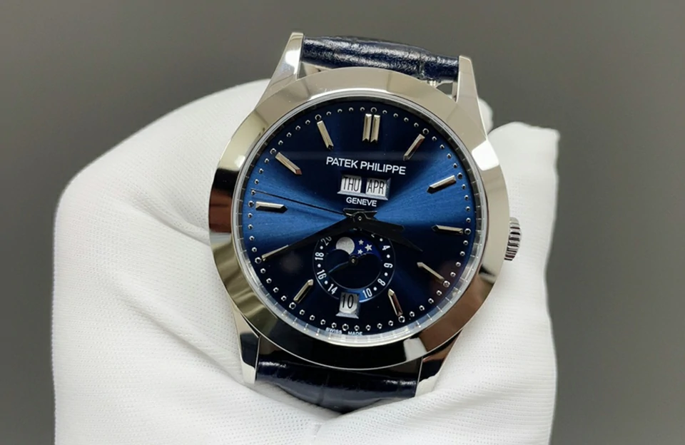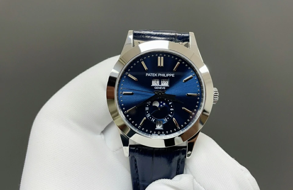 特色:日期、星期、月份、月相功能與正品一致,水晶藍寶石鏡面、燒藍鋼指針,搭配原裝同款燈籠折疊扣,完美還原原裝上手質感及佩戴舒適度。