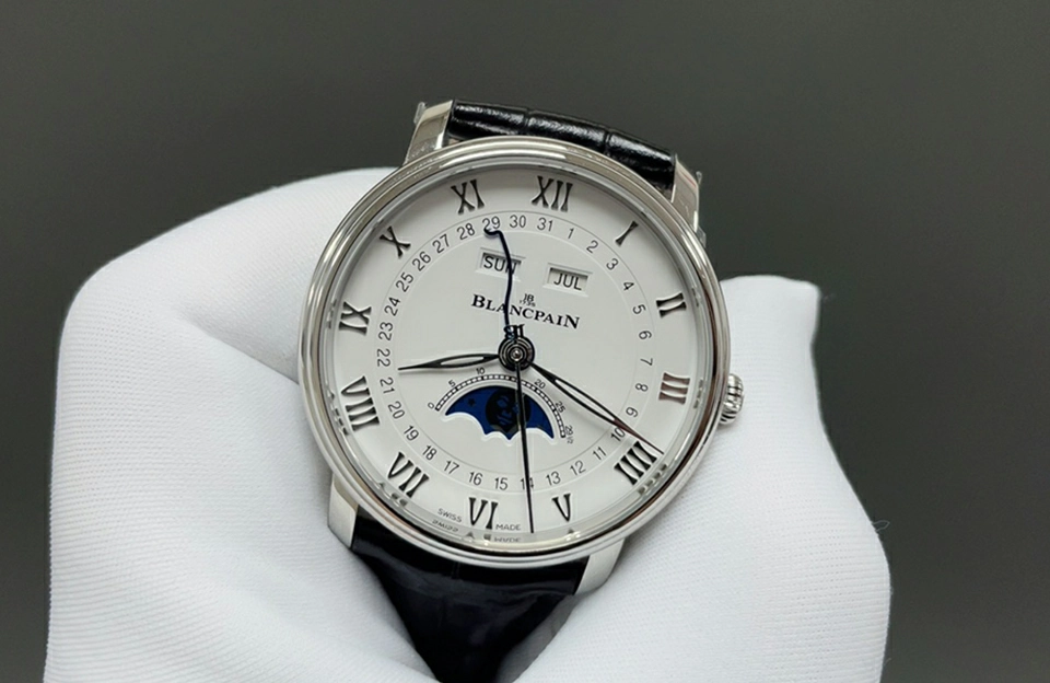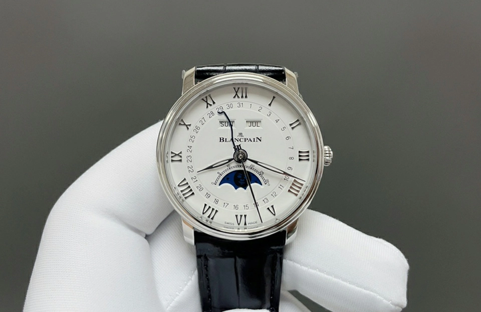 GR廠全新品 Blancpain寶珀高仿腕錶 Villeret Quantième Complet 6654-1127-55B 是一款超越時間記錄功能的藝術傑作。其精巧細膩的製作工藝與典雅設計使之不僅僅是時間管理工具,更是佩戴者身份與品味的象徵。無論走入繁忙職場或享受閒暇時光,此腕錶都能展現配戴者獨特而尊貴的氣質,令其在任何場合都輕鬆成為眾人注目的焦點。