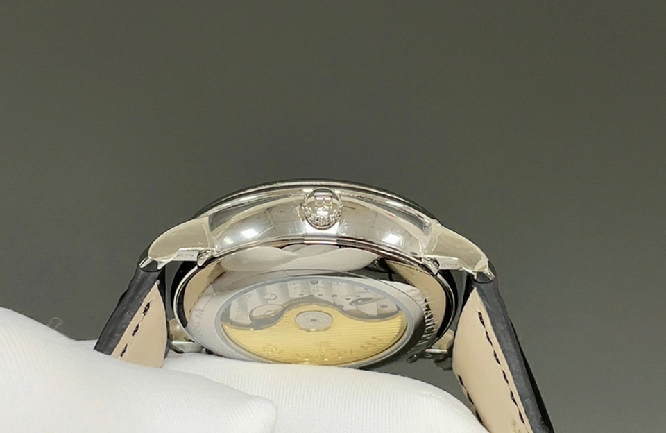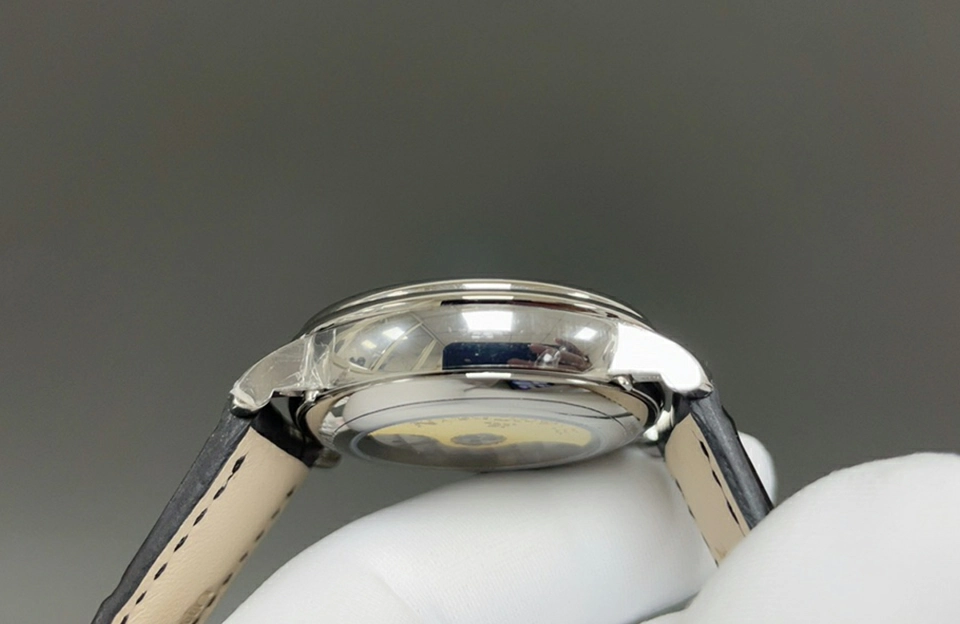 GR廠推出的寶珀高仿錶 Villeret Quantième Complet 6654-1127-55B,以卓越工藝與優雅設計完美融合,呈現出一款兼具功能性與美感的全曆月相腕錶。此系列採用階梯式錶殼設計,直徑40公釐,整體造型簡約但不失層次感,琢磨出低調卻耐人尋味的立體美學。錶盤設計展現出一種內斂而精緻的韻味,採用同心圓佈局,外圍設計搭配立體羅馬數字時標,而內圈則是日曆指示區域,兩者相輔相成,使資訊呈現清晰易讀,提升觀賞與使用體驗。