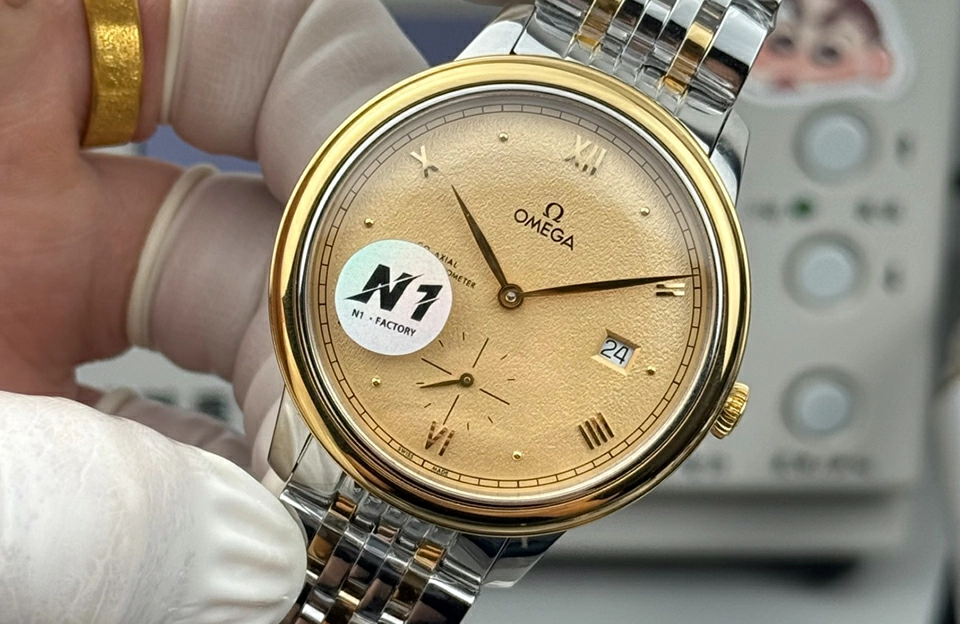 N1廠歐米茄復刻錶推薦 De Ville Prestige 型號 434.20.41.20.08.001,以經典與現代融合的設計,成為品味與質感愛好者的理想之選。這款腕錶擁有優雅的香檳色錶盤與41mm適中的錶殼直徑,展現出無法抗拒的奢華魅力。