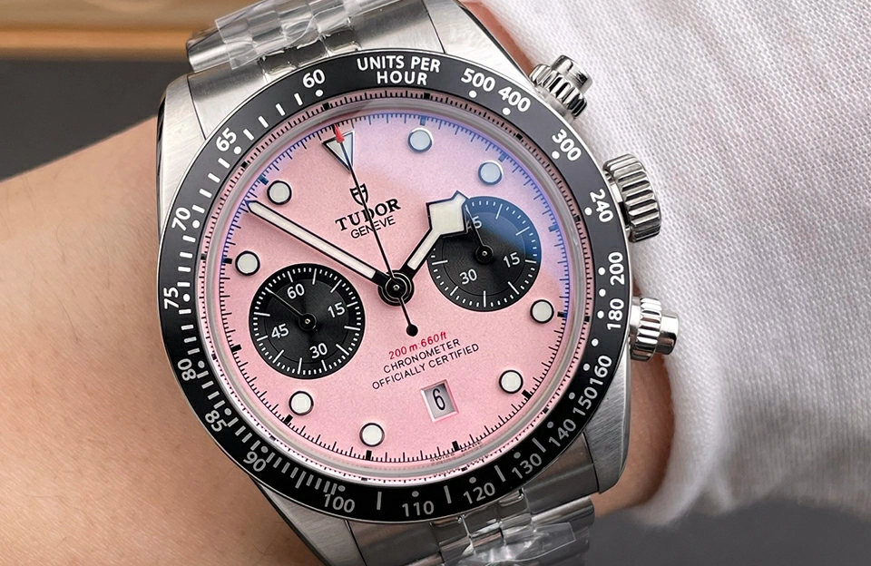 探索 BLS 廠帝舵 復刻 錶 Black Bay Chrono 79360n-0019,這款腕錶融合了經典與現代的設計,無疑是每位鐘表愛好者的理想選擇。作為一款帝舵 復刻 錶,這款手錶以其獨特的粉紅色錶盤和黑色錶圈,展現出卓越的時尚感與技術性能。