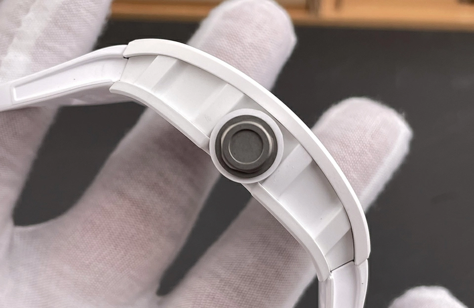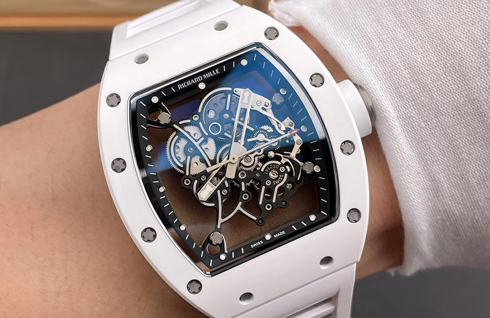 RM 055的鏤空錶盤設計巧妙,讓人一眼難忘,展現出其內部機芯的精湛工藝。陶瓷錶殼不僅輕便耐磨,還增添了一份現代感,與橡膠錶帶的搭配更是舒適合手,適合各種場合佩戴。此外,30米的防水性能讓您無需擔心日常生活中的潑水問題。