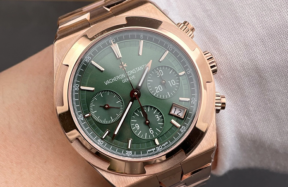 不僅僅是一款手錶,8F 廠江詩丹頓 冒牌 Overseas Chronograph 5520V/210R-B966是每位品味人士的理想之選,彰顯您的獨特風格與品味。立即擁有這款絕美的冒牌手錶,成就您的時尚之旅。手錶的錶面由藍寶石玻璃製成,耐磨且清晰,搭配綠色錶盤,增添了一絲獨特的個性。錶殼和錶帶均使用高品質的904L鋼,展現出極優的耐用性和奢華感。