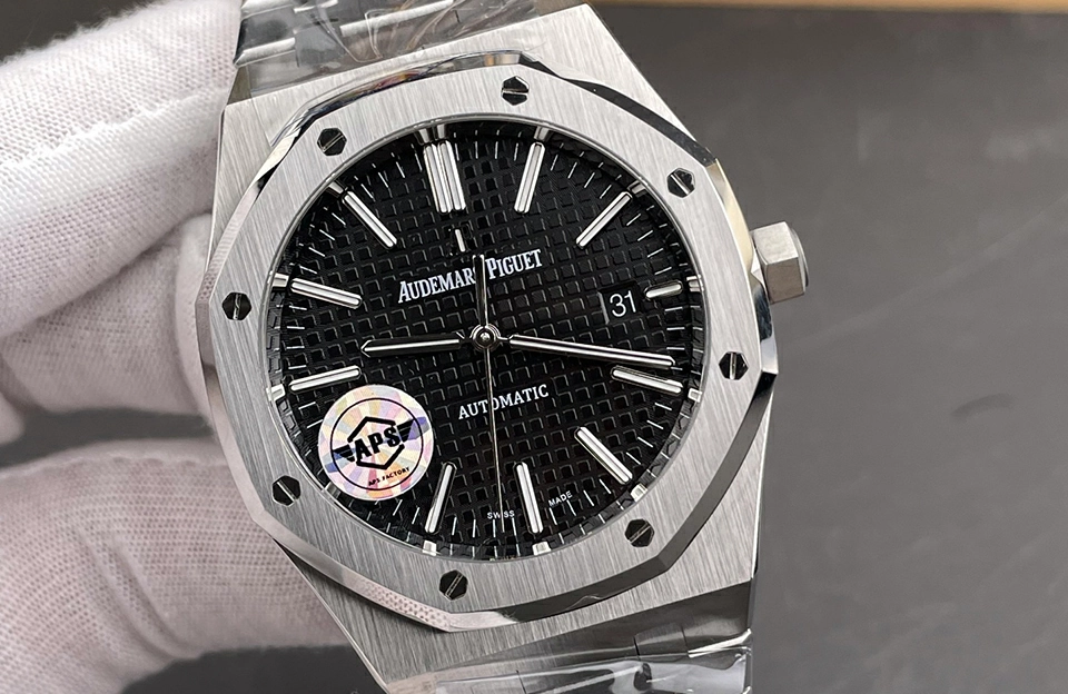 錶面採用高品質藍寶石玻璃,不僅耐磨損,還能持久保持清晰透亮。黑色錶盤更是增添了奢華感,讓這款愛彼仿冒品成為您手腕上的亮眼之選。