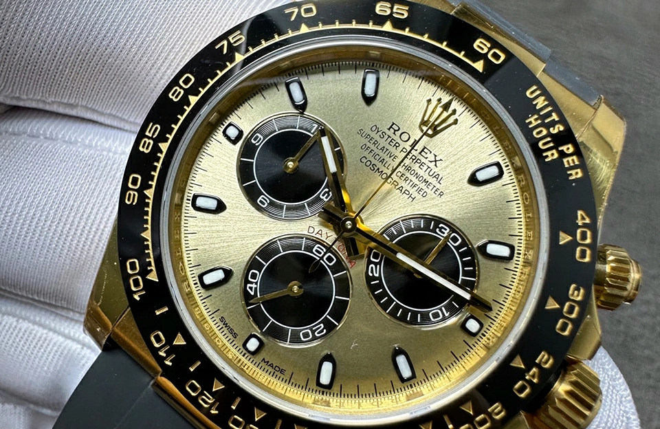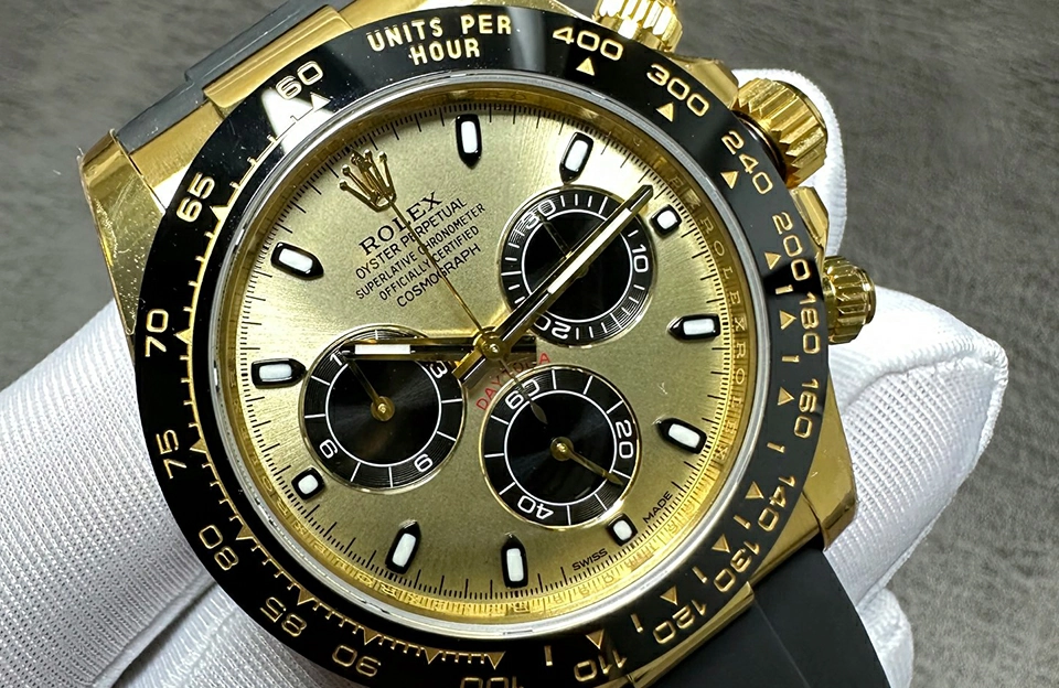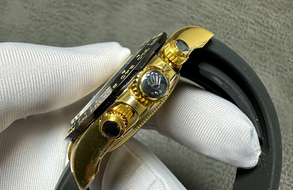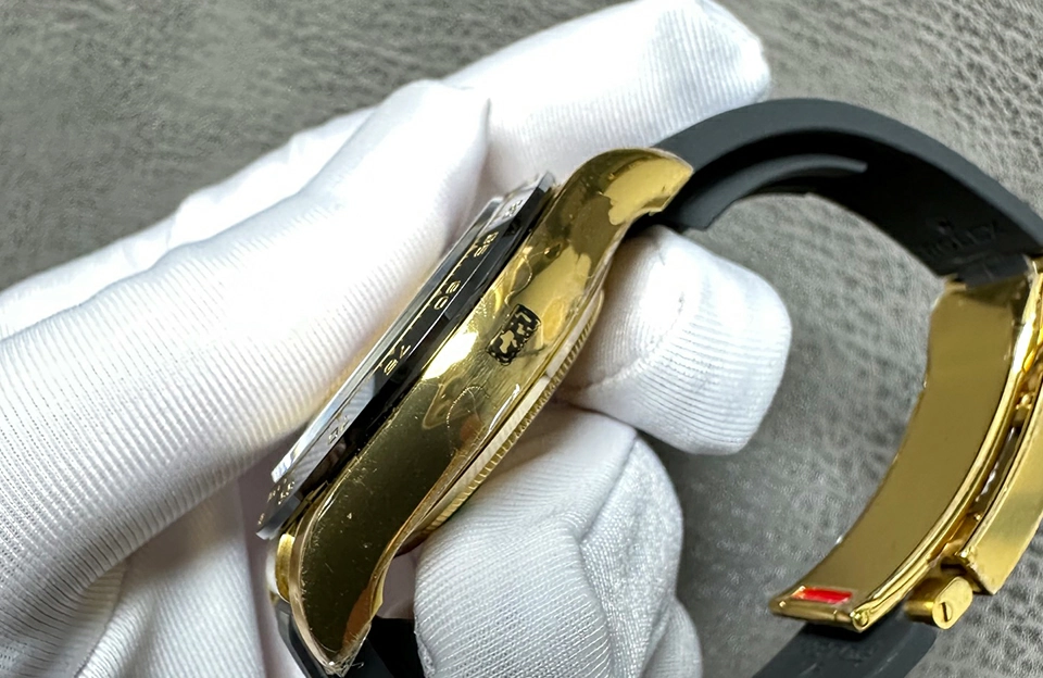 錶面采用藍寶石玻璃,抗刮擦性能極佳,金色錶盤更添奢華感。901L鋼製錶殼不僅耐用,還散發出獨特的光澤,搭配橡膠錶帶,讓您在佩戴時感受到無與倫比的舒適性。