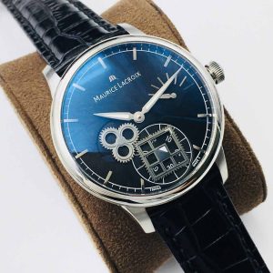 錶殼:直徑42毫米。磨砂拋光精鋼錶殼。帶60分鐘刻度和黑色陽極氧化鋁插件的單向旋轉精鋼表圈。